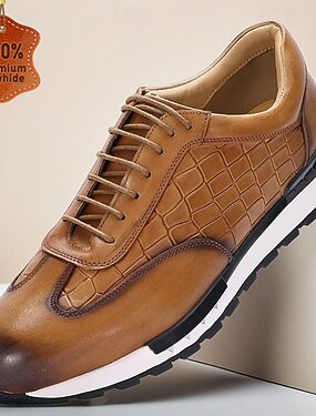 Tênis masculino marrom escuro de couro legítimo, design perfurado respirável com palmilha macia, conforto estiloso para uso diário no escritório e casual