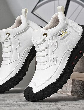 Homens Botas Retro Tamanhos Grandes Caminhada Casual Diário Pele PU Confortável Botas Cano Alto Com Cadarço Castanho avermelhado Preto Branco