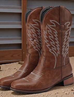 Botas de cowboy masculinas estilo western em couro sintético marrom com detalhes bordados – calçado robusto e estiloso para eventos country e western