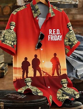 Homens Côr Camuflagem Militar veteranos Camisa Social camisa de verão camisa de botão Manga Curta Vintage retrô Patriótico Ao ar livre Feriado Verão Primavera Aberto para a Lateral Impressão 3D