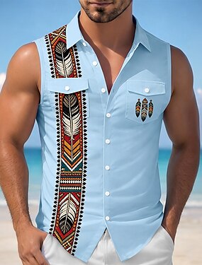Homens Penas Ética / Africano Camisa Social camisa de botão camisa sem manga Sem Manga Vintage retrô Ao ar livre Trabalho Casual Verão Primavera Aberto para a Lateral Impressão 3D Dois bolsos frontais