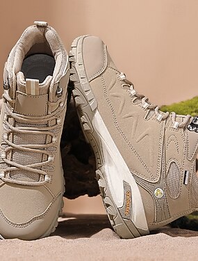 Botas de trilha masculinas bege impermeáveis – duráveis e confortáveis, perfeitas para caminhadas, corridas de trilha e uso ao ar livre durante todo o dia