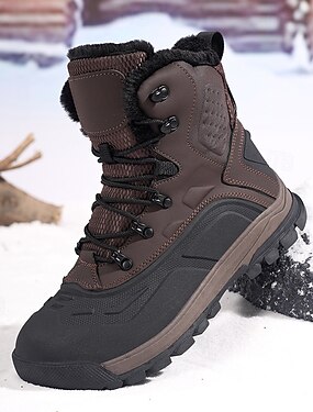 Botas de caminhada de inverno masculinas, marrons, impermeáveis, com forro de pele – botas de cano curto antiderrapantes para caminhadas ao ar livre, para clima frio e acampamento