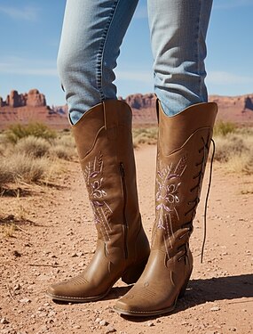 botas de cowboy femininas bordadas marrons com cadarço acima do joelho, estilo western para roupas casuais e eventos country