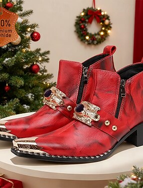 botas masculinas de couro vermelho com detalhes em strass e biqueira prateada – elegantes e estilosas para festas de Natal e comemorações de feriados