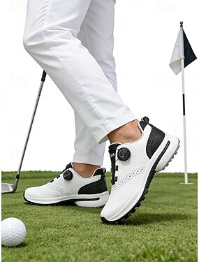 Sapatos de golfe masculinos – elegantes sapatos brancos com ajuste confortável, ideais para atividades de golfe esportivas e casuais.
