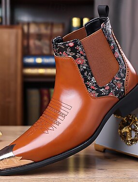 Botas Chelsea masculinas em couro sintético bege – elegantes e confortáveis, ideais para ocasiões formais, negócios e uso diário.