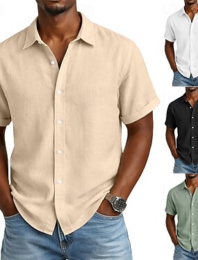 Homens Camisa de linho Camisas Polo Casual Rua Lapela Manga Curta Básico Moderno Cruz Botões Verão Primavera Normal Preto Branco Azul Marinha cáqui Verde Tropa Cinzento Camisa de linho