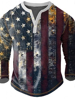 4 de Julho de 2026 250º Dia Memorial Camiseta Henley de Manga Longa Casual Designer Vintage Masculina