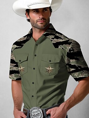 Homens Côr Camuflagem Estrelas camisa ocidental camisa de botão Camisa de caubói Manga Longa Ocidental Vintage retrô Casual Ao ar livre Primavera Outono Aberto para a Lateral camisas de colarinho
