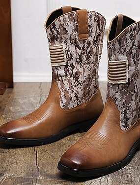 Homens Botas Botas Cowboy Retro Caminhada Vintage Casual Ao ar livre Diário Pele PU Confortável Antiderrapante Respirável Botas Cano Médio Sem Atacadores Preto Marron Côr Camuflagem Primavera Outono