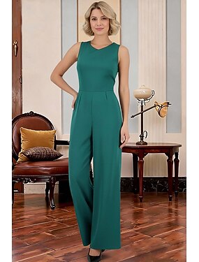 Macacão Longo Vestido Para Mãe dos Noivos Sem Manga Decote Canoa Elegante Simples Formal Convidado do casamento Noite Formal Tecido Que Estica com Cor Única