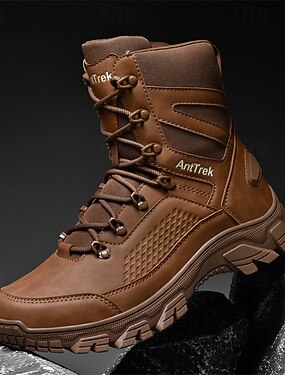Botas masculinas bege para caminhada ao ar livre com sola de borracha antiderrapante e construção respirável, botas táticas leves para trekking, camping e uso diário