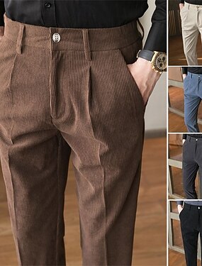 Homens Social Calças de Veludo Calças chinês Bolsos Botões Tecido Conforto Formal Festa Trabalho Moda Estilo Clássico Preto Azul Micro-Elástica