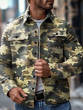 Homens camuflagem Cowboy Jaqueta Camisa Camisola Manga Longa Vintage Casual Roupa Diária Para Noite Outono & inverno Camisas de colarinho Botões Impressão 3D 2 bolsos Verde Tropa