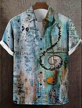 Homens Notas musicais Camisa Social camisa de verão camisa de botão Manga Curta Vintage retrô Festival de Música Feriado Verão Aberto para a Lateral Impressão 3D Um bolso frontal Camisa tipo linho