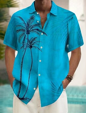 Homens Coqueiro Natureza e Paisagem Plantas Tropicais Camisa havaiana camisa de botão Camiseta Aloha Manga Curta Havaiana Férias Verão Primavera Aberto para a Lateral Impressão 3D camisas de