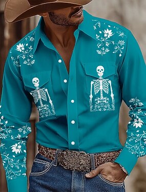 Homens Caveiras Estampa floral Flores Camisa Social camisa ocidental Camisa de caubói Manga Longa Vintage retrô Ao ar livre Casual Roupa de Trabalho Primavera Outono Aberto para a Lateral Dois bolsos