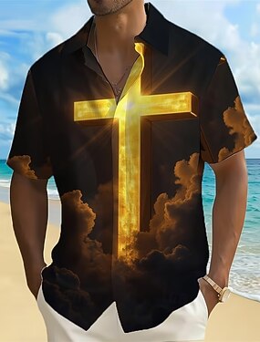 Sexta-feira Santa Homens Cruz Religião Camisa Social camisa de verão camisa de botão Manga Curta Vintage retrô Feriado Casual / Diário Verão Primavera Aberto para a Lateral Impressão 3D camisas de
