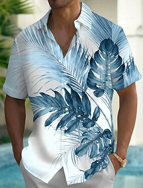 Homens Cor gradiente Folha de palmeira Plantas Tropicais Camisa havaiana camisa de botão Camiseta Aloha Manga Curta Havaiana Casual Férias Verão Primavera Aberto para a Lateral Impressão 3D camisas
