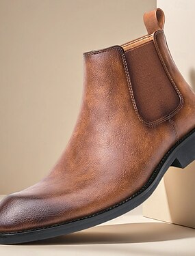 Botas Chelsea marrons clássicas masculinas com acabamento liso, estilo bota de cano curto atemporal para cavalheiros, perfeitas para uso casual de negócios, escritório e eventos noturnos