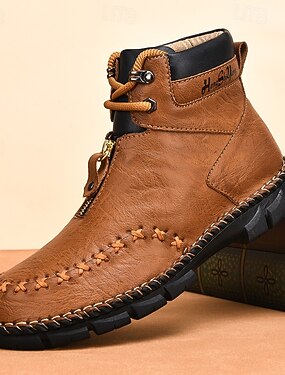 Botas masculinas artesanais em couro sintético – botas de cano curto versáteis e casuais para aventuras ao ar livre e uso no dia a dia.