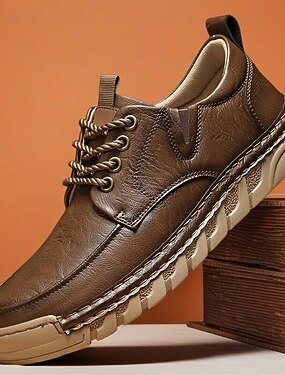 Tênis confortáveis masculinos de couro sintético marrom – calçados antiderrapantes e acolchoados para atividades ao ar livre, para caminhadas, trabalho e uso diário