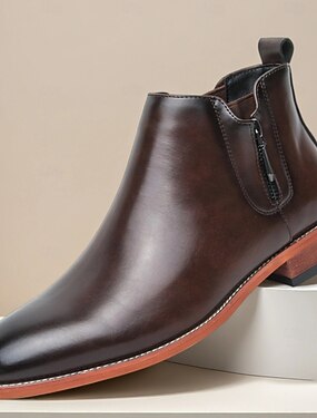 Botas Chelsea masculinas de couro sintético marrom – botas sociais com zíper lateral e cano curto para trajes sociais, de escritório e casuais