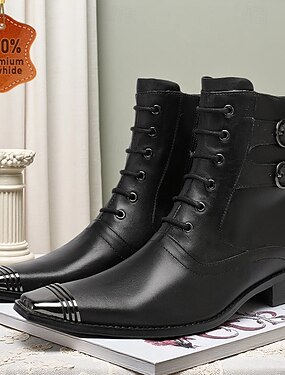 Botas de combate masculinas em couro preto com fivelas – design arrojado com um toque moderno, ideais para ocasiões casuais e semiformal.