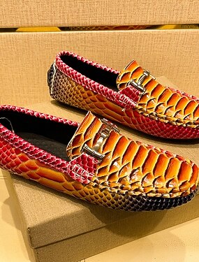 mocassins masculinos com estampa de cobra vermelha e laranja – sapatos de festa com estampa exótica para eventos formais, casamentos e vida noturna