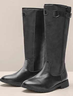 Botas masculinas pretas de couro sintético para motociclistas com tiras – elegantes e robustas, ideais para motociclistas e para uso casual no dia a dia.