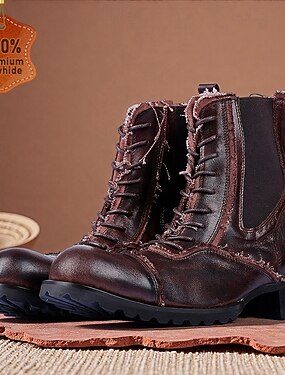 Botas de trabalho masculinas de couro marrom – sapatos vintage de couro bovino com cadarço e sola robusta para construção, aventura ao ar livre e uso diário casual