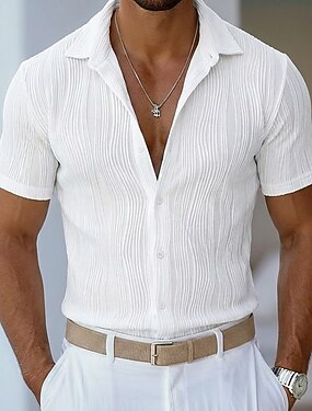 Homens Camisa Social camisa de verão camisa de botão Camisa Jacquard Cardigã Azul Branco Roxo Verde Manga Curta Textura Moderno Colarinho Lapela Casual Casa Botões Roupa Moderno Contemporâneo Moderno