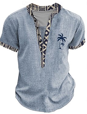 Homens Étnico Camiseta Camisa Henley Camisetas Manga Curta Designer Básico Étnico Ao ar livre Casual Diário Verão cáqui Henley Camiseta Henley