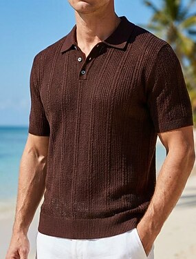 Homens Camisas Polo Polo de malha trançada Casual Rua Lapela Manga Curta Básico Moderno Tiras verticais Leve Botões Verão Primavera Normal Branco Marron Camisas Polo