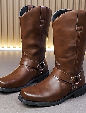 Botas masculinas de cano alto em couro sintético marrom – botas sociais clássicas com zíper para inverno, negócios e ocasiões formais