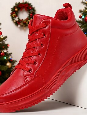 Tênis masculinos de cano alto em couro sintético vermelho – calçado moderno e confortável para uso casual no Natal e passeios de fim de ano