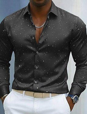 Homens Camisa Social camisa de verão Camisa casual camisa de praia camisa de botão Preto Manga Longa Côr Sólida Lapela Casual Diário Paetês Roupa Moda Casual Confortável