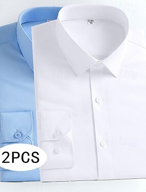 Homens Camisa Social Saia Camisa não de ferro camisa de botão Tecido Formal Casamento Vinho+Azul Branco + preto Branco + azul Laranja / preto Manga Longa Lapela Primavera & Outono Todas as Estações