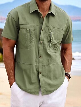 Homens Camisa Social camisa de linho camisa de verão Roupa de Praia camisa de botão Tecido Férias Curise Preto Branco Rosa Azul Manga Longa Lapela Primavera Verão Roupa