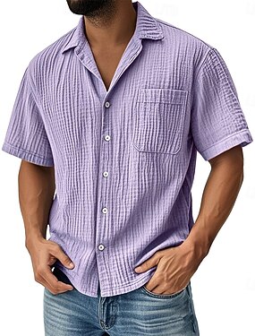 Homens Camisa Social Camisa de linho camisa de verão camisa de botão Camisa casual camisa de praia Tecido Férias Casual Preto Branco Rosa Azul Manga Curta Colarinho Verão Roupa