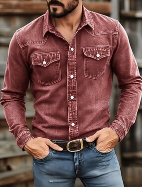 Homens Camisa Social Camisa casual Camisas de trabalho camisa de botão Tingimento em peça Camisa desbotada Azul Preto Vermelho Camelo Cinzento Claro Manga Longa Tecido Colarinho de Camisa Casual