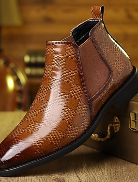 Homens Botas Botas Cowboy Bordado Retro Caminhada Vintage Ao ar livre Diário Pele PU Confortável Antiderrapante Respirável Botas Cano Médio Sem Atacadores Preto Marron Primavera Outono Inverno