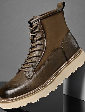 Homens Botas Retro Caminhada Vintage Diário Couro Ecológico Confortável Botas Cano Médio Com Cadarço Preto Cáqui Primavera Outono