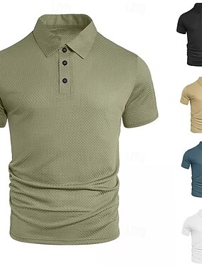 Homens Polo de seersucker Ice Silk Textura Casual Feriado Clássico Manga Curta Moda Básico Tecido Botões Resfriamento Verão Primavera Todas as Estações Azul Preto Branco Marron Verde Polo de