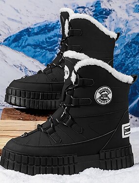 Botas de inverno impermeáveis pretas masculinas com forro de pele e sola com tração - calçado durável e isolado para neve, caminhadas e aventuras de inverno.