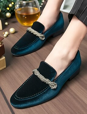mocassins masculinos de veludo azul-petróleo com detalhes de corda - estilo natalino elegante, perfeitos para festas de fim de ano e celebrações festivas