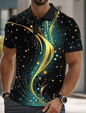 Homens Geométrico Linha Camisas Polo Manga Curta Camisas polo Camisas de colarinho Casual Ao ar livre Roupa Esportiva Roupa Diária Impressão 3D Botões Primavera Verão Azul Roxo Marron