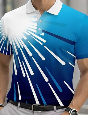 Homens Abstrato Linha Pólo Manga Curta Camisas polo Lapela Casual Roupa Esportiva Impressão 3D Botões Verão Castanho Escuro Preto Azul