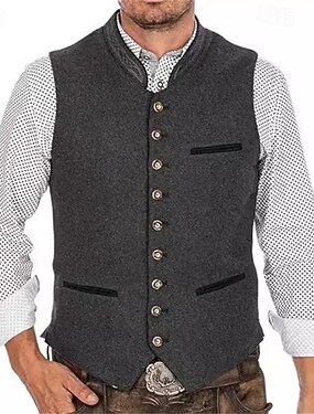 Homens Colete Gilet Férias Festa O negócio Moda Casual Primavera Outono Bolsos Botões Poliéster Confortável Tecido Comum 1 Botão Decote V Normal Cinzento Colete
